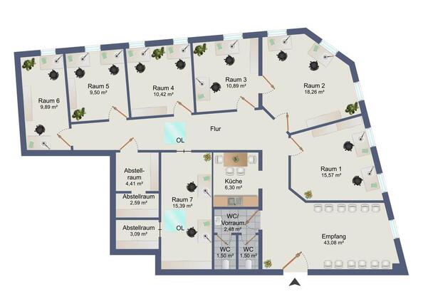 Die Gewerbeeinheit befindet sich im 2. Obergeschoss eines mehrstöckigen Wohn- und Geschäftshauses und verfügt über eine Fläche von insgesamt ca.154,86 m².