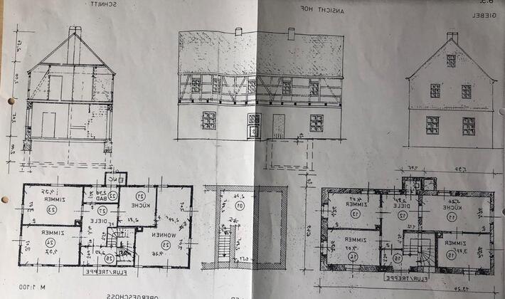 Wohnhaus: Baujahr 1875, Ca 127 m2 Wohnfläche, 7 Zimmer, Massivebau, Zentralheizung, 2 Bäder, Hausrenovierungsbedürfnig.