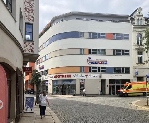 Die attraktive Hälfte der Büro-Etage befinden sich im 3. OG eines 2002 neu gebauten gepflegten und repräsentativen Wohn-und Geschäftshauses in der Zwickauer Innenstadt in sehr guter Lauflage.